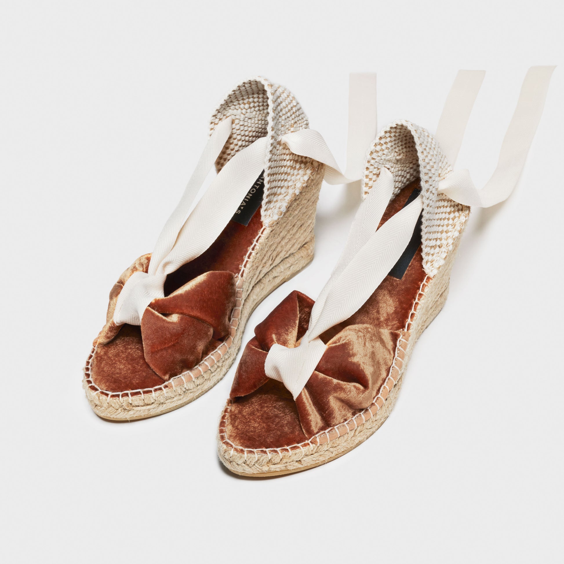 The Amalia's older sister consist of a ruched cotton velvet wedge with 8cm heel. Most comfortable heel you'll ever wear.